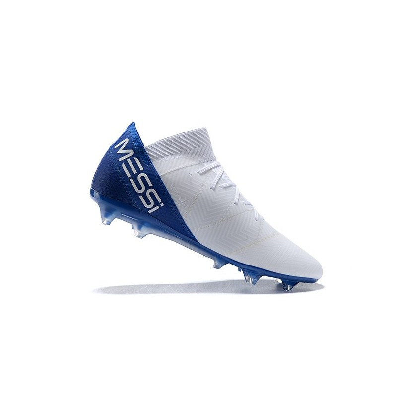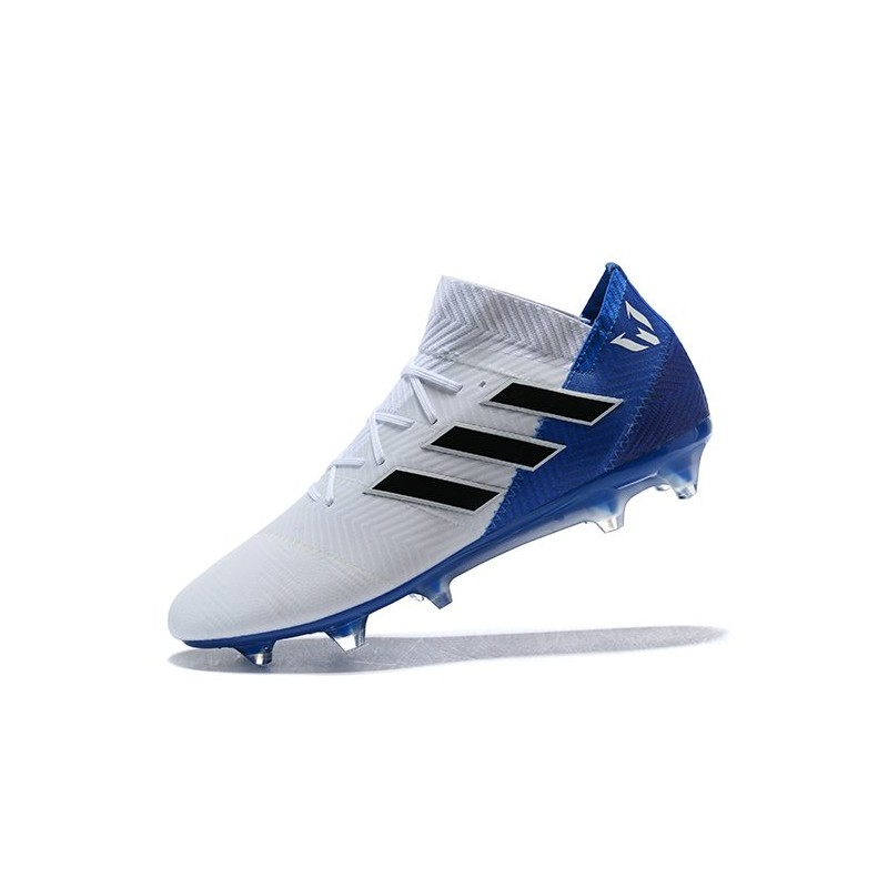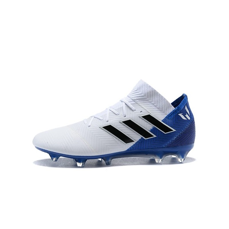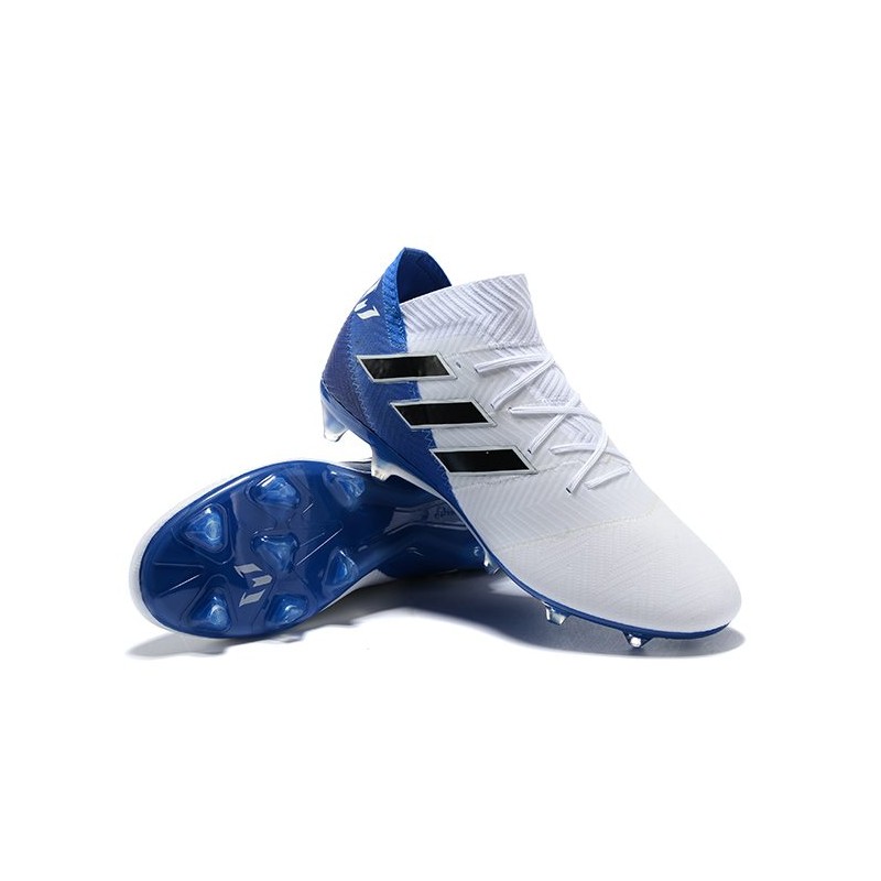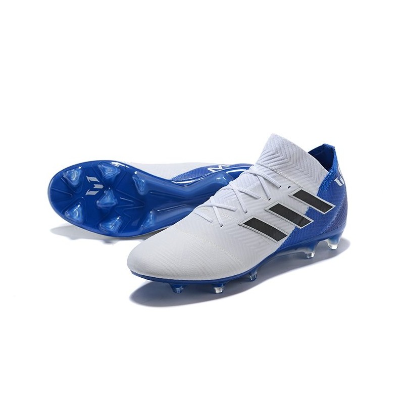 Neuf Chaussures de Football - Adidas Nemeziz Messi 18.1 FG Blanc Bleu