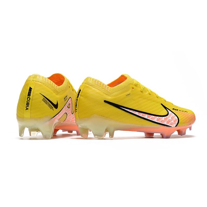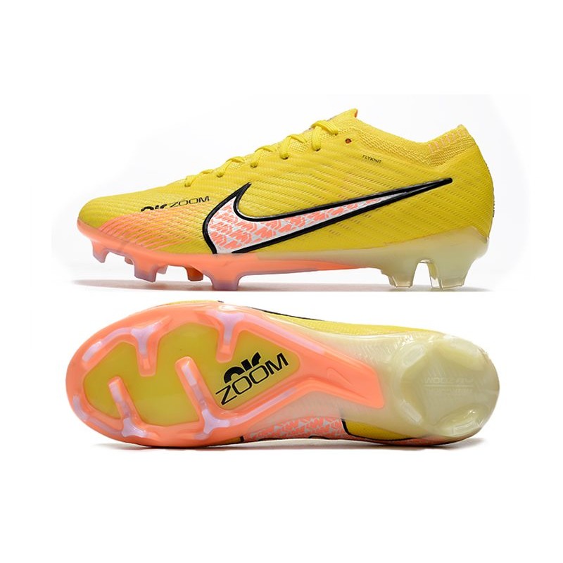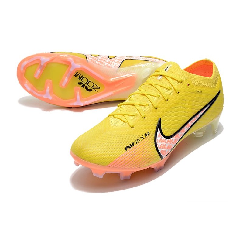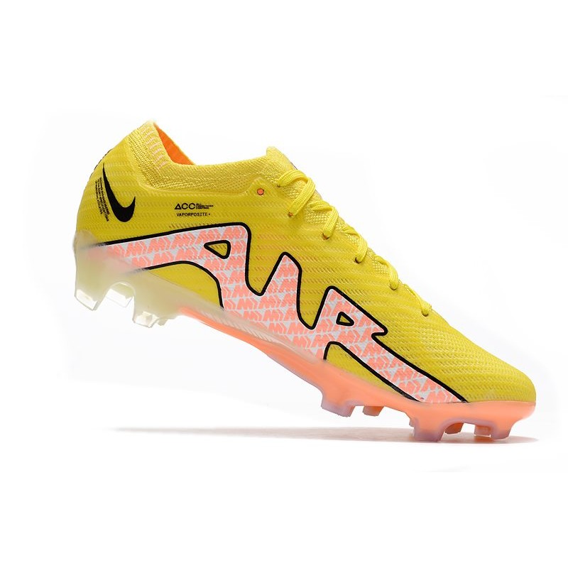 Dans la carcasse de la nouvelle Nike Mercurial 15, nous pouvons voir comment le Flyknit de la partie supérieure et de la zone de la cheville est fusionné avec la technologie chargée de donner du soutien et plus d'adhérence lors de la frappe de la balle, comme le ENGINEERED CHEVRON MESH.